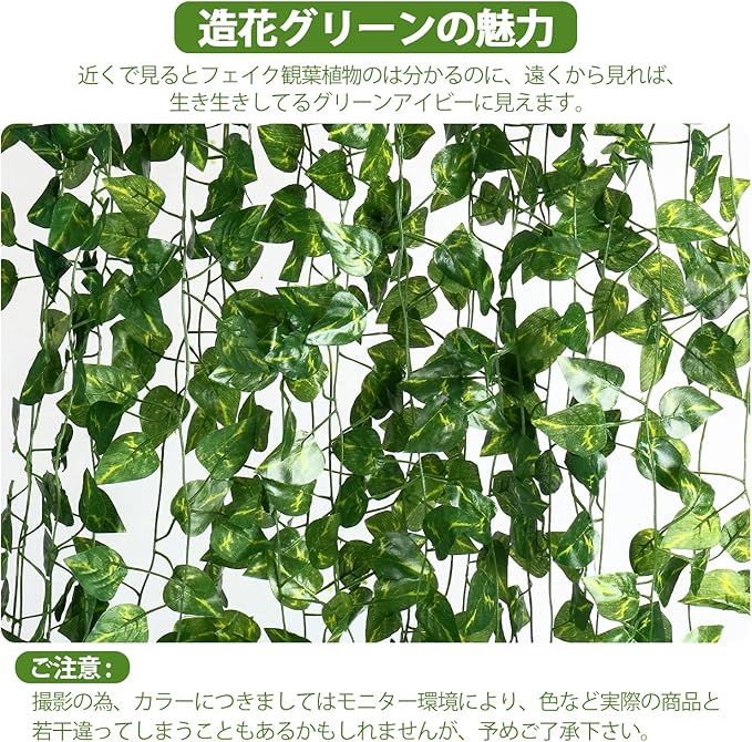 ✿材質:造花観葉植物の葉は絹の材質を採用して、光沢感を持ち、柔らかい手触りで、直径は1.4mmの茎はプラスチックで作られ、本物アイビーの生き生きする姿を再現します。細部まで心入れの作りで、葉落ち無く何度も使えて長持ちできます。
