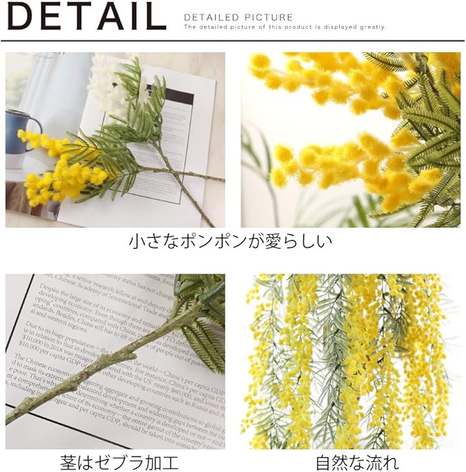 ご利用シチュエーションに合わせて、3本、7本、ガーランドとお選び下さい。他の造花と組み合わせたり、ミモザの花束にして花瓶に飾ったり、上から吊るして使ったりと気分やT.P.Oに合わせてお使いいただけます。
