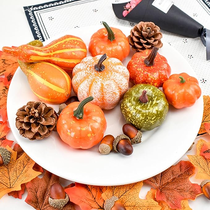 【DIYの楽しみ】あなたのニーズに合わせて、カボチャセットを自由に飾ることができます。例えば、それらを組み合わせたり、皿に配置したり、クリスマスリースに使用したりすることができます。これにより、子供たちと一緒に自由にアレンジし、DIYの楽しみを存分に楽しむことができます。