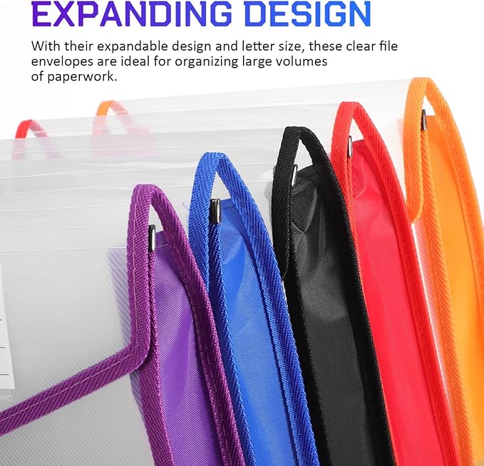 【拡張可能なデザイン】パンチレスファイルは拡張可能なデザインとレターサイズにより、これらのクリアファイル封筒は大量の書類の整理に最適です。