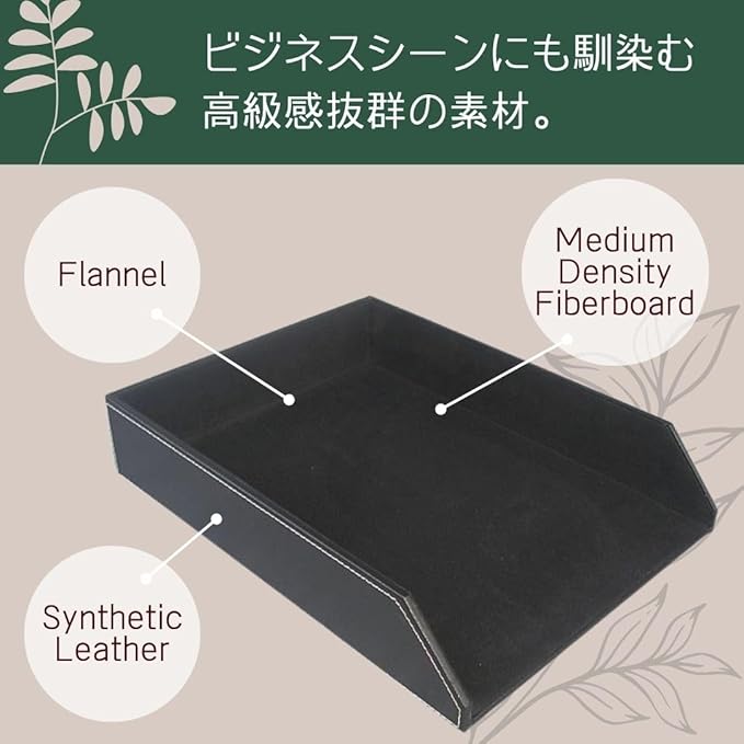 レターケース A4 書類トレー PUレザー 高級トレー デスク 書類整理 レザー書類 卓上収納 ブラック オフィス用品 幅34 奥行27 高さ6cm ブラック