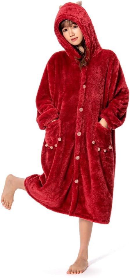 OLAOLA 着る毛布 暖かい ドラゴン 可愛い ルームウェア 大人用 フード付き ふわふわ パジャマ おしゃれ 冬服 丸洗い 毛布 冬用 着ぐるみ 着る毛布 厚手 ゆったり かわいい 春 秋 冬 防寒 保温 男女兼用 (L 172-185, レッド)