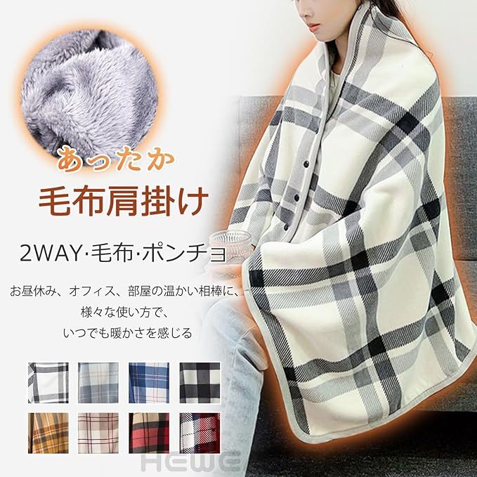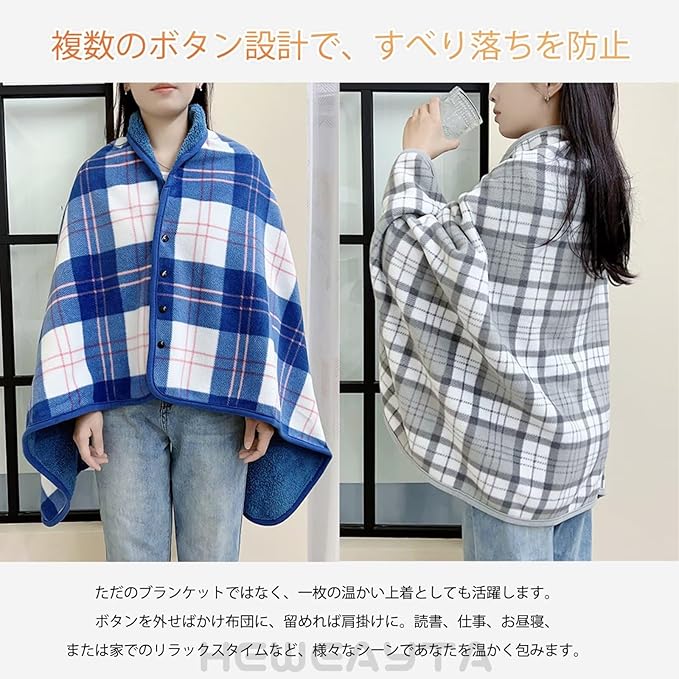 [HEWEAYTA] ブランケット 着る毛布 チェック柄 ボタン付き - ハーフケット 裏起毛 もこもこ 厚手 肩掛け ひざ掛け 防寒 保温 寒さ対策