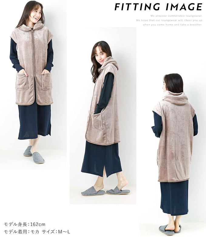 [ON NISHIKI] ベスト 着る毛布 レディース 冬 暖かい もこもこ ウルトラマイヤー 前開き ロング丈 ポンチョ ガウン ルームウェア 部屋着