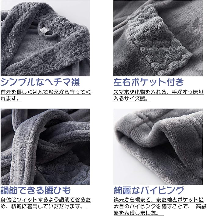 [JIFA] バスローブ メンズ レディース フランネル ガウン ふわふわ あったか 保温 ポケット付き 洗える 秋冬 部屋着 着る毛布 男女兼用 ルームウェア