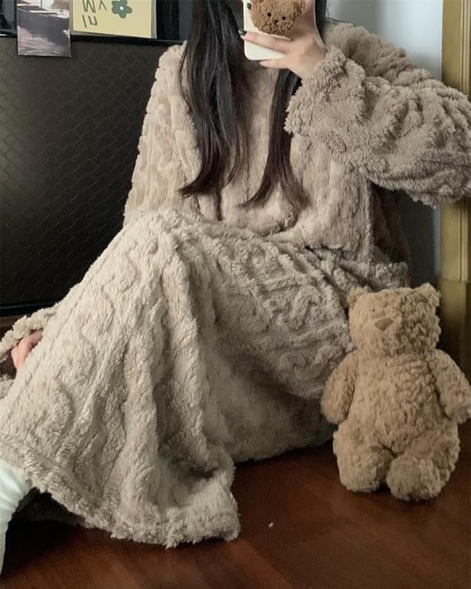 [MaxWant] ルームウェア 部屋着 レディース パジャマ ワンピース ロング 着る毛布 もこもこ 冬 暖かい かわいい