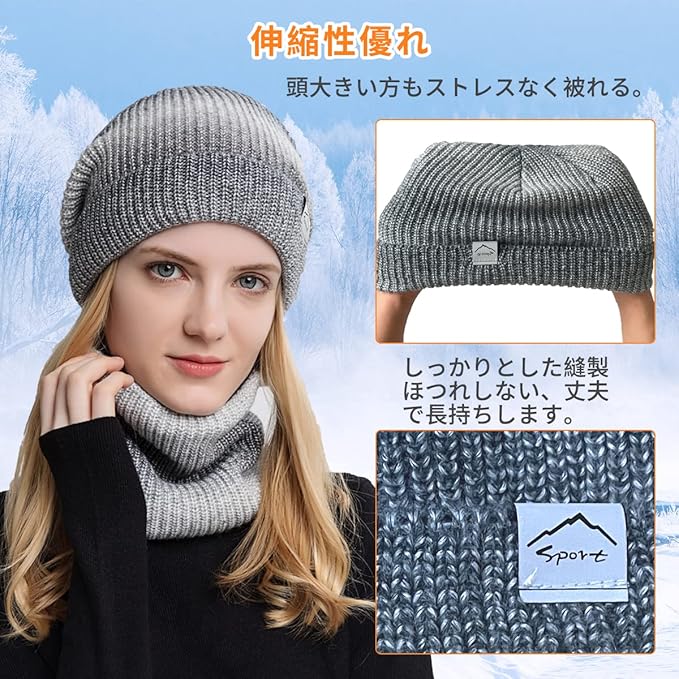 [CUBATTY] ニット帽 ネックウォーマー セット レディース ニット 帽子 防寒 ニットキャップ ふわふわ 裏起毛 厚手 柔らかい 防寒保温 おしゃれ ニット帽子 女の子 冬 スキー スノボー 自転車 バイク 通勤 通学 登山 アウトドア