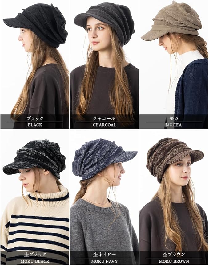 [Loo&c] 帽子 つば付き ニット帽 リンクルニットキャスケット 大きいサイズ レディース ゆったりサイズ ワッチ ニットキャップ メンズ 防寒 耳あて