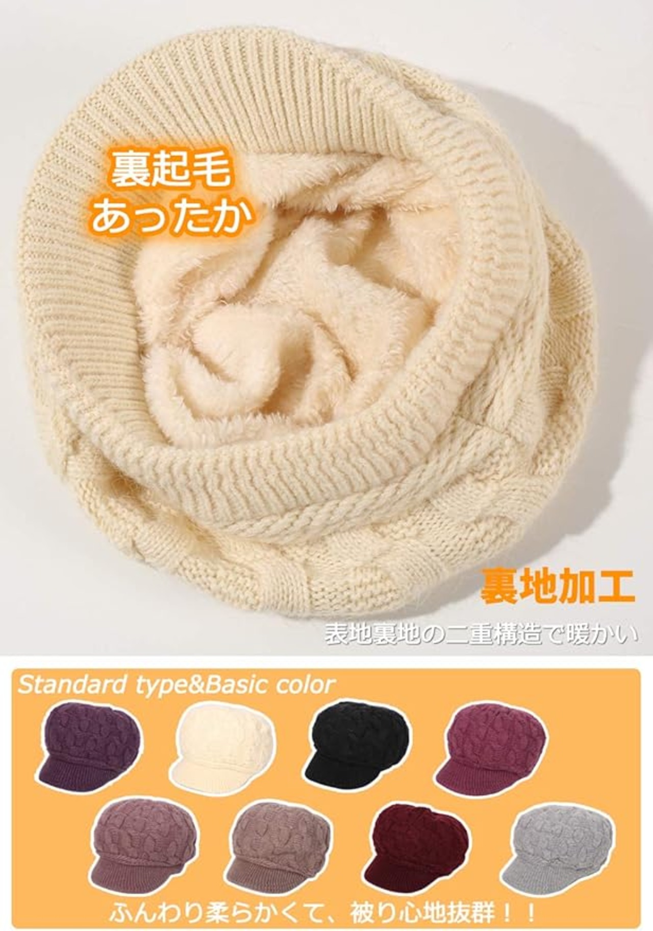 [KOZMOZ] ニット帽 ツバ付き 裏ボア キャスケット レディース 小顔効果 防寒対策 耳まで暖かい カジュアル 秋冬 帽子