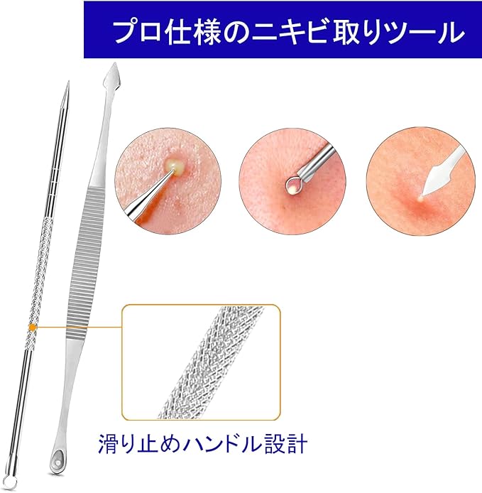 角栓取り 毛抜き ニキビ取りツール 7本セット 抗菌ステンレス 黒ずみ除去ニキビ針ツールセット毛穴ケア専用キット 鼻 顔 皮膚 シミ抽出ツール