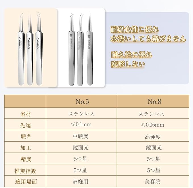 【優れたステンレス】厳選された高品質のステンレスで、耐腐食性に優れ、水洗いしても錆びません。滑らか表面及び美しい明るさを持ちます。使用前後ツールを消毒することが必要です。