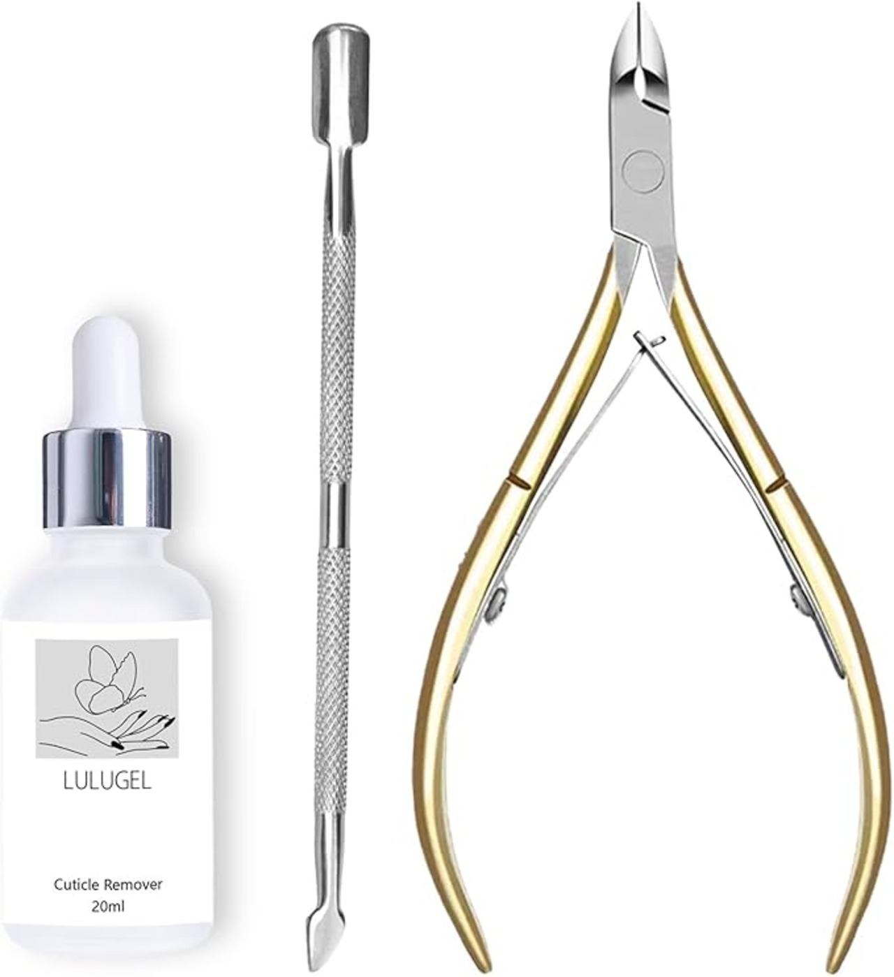 LULUGEL 甘皮処理 セット キューティクル・リムーバー20ml、甘皮 ニッパー、メタルプッシャーが付いた3点セット、ジェルネイル前の下処理をハイクオリティに実現可能、更にネイル休息時や、爪 ケア メンズも爪ケアができます。保証もついて安心なネイルケアセットです。
