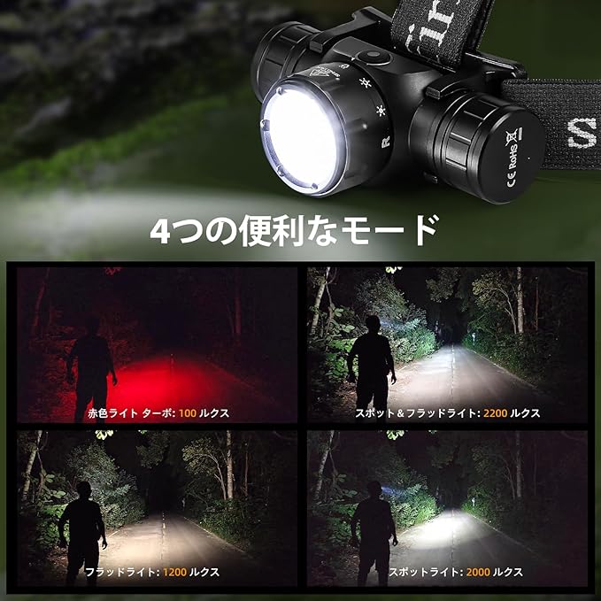多機能な出力と超高輝度:HS21はスポットライト、フラッドライト、赤色ライトを搭載しています。さらに、スポットライトとフラッドライトを同時に点灯させることができ、最大2200ルーメンの明るさを実現し、ハイキング、フィッシング、サイクリング、キャンプなど、あらゆるアウトドア活動に最適なヘッドランプです。