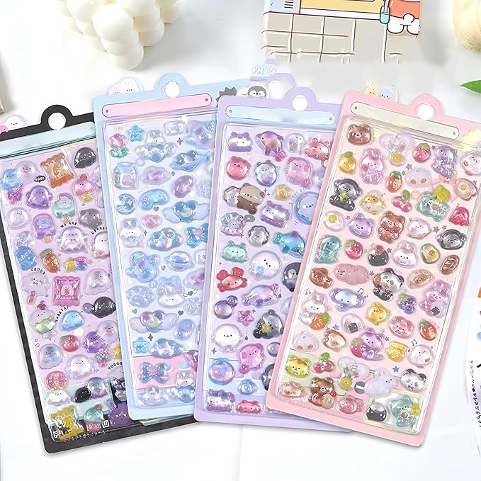 ぷくぷくシール 10枚セット ぷっくり立体 かわいい ごほうびシール 大容量 子供向け スマホケースデコ 手帳DIY ギフト 贈り物 ラメ 光沢 剥がしやすい (10)