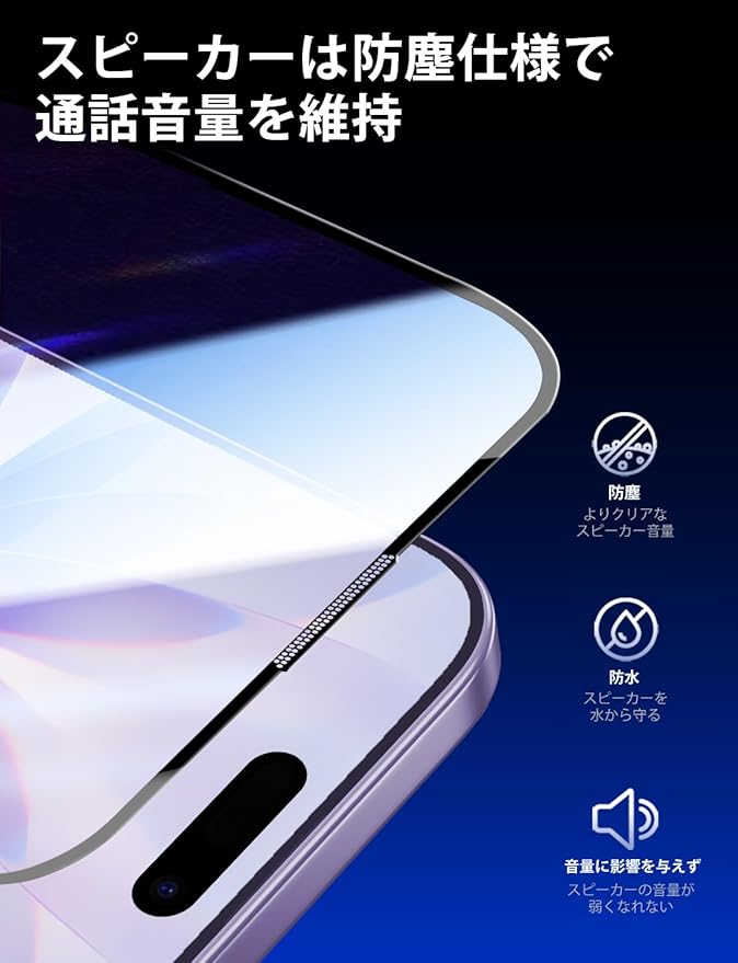 【スピーカー保護】本製品(強化ガラスフィルム)は完全にスマホ本体のスピーカーを覆うことでなく、メッシュデザインでホコリ防止、防水などが可能です。なお、スピーカーの作動にも影響なく楽に使えます。