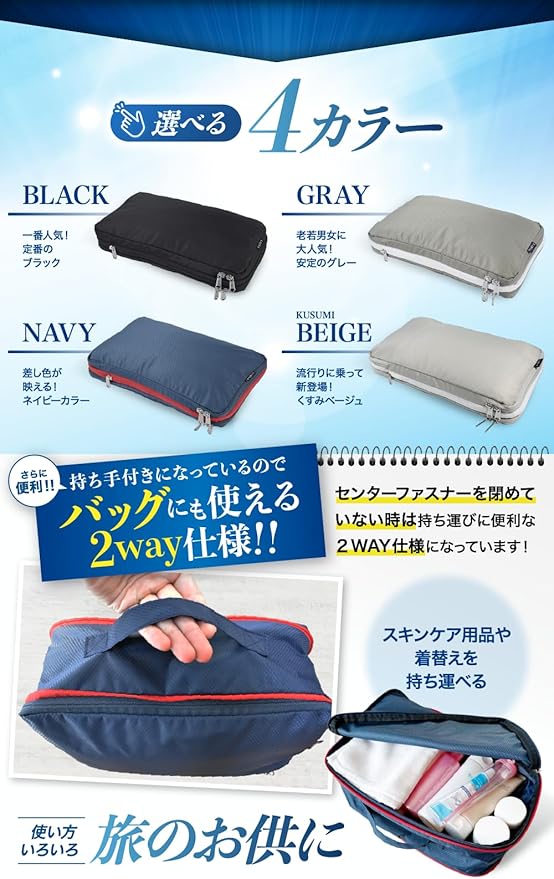 【じゃらん ZIPで紹介】LIXIA 旅行用圧縮袋 YKK 圧縮袋 旅行 2Way スペース節約 YKKダブルファスナー トラベルポーチ (M, ネイビー)