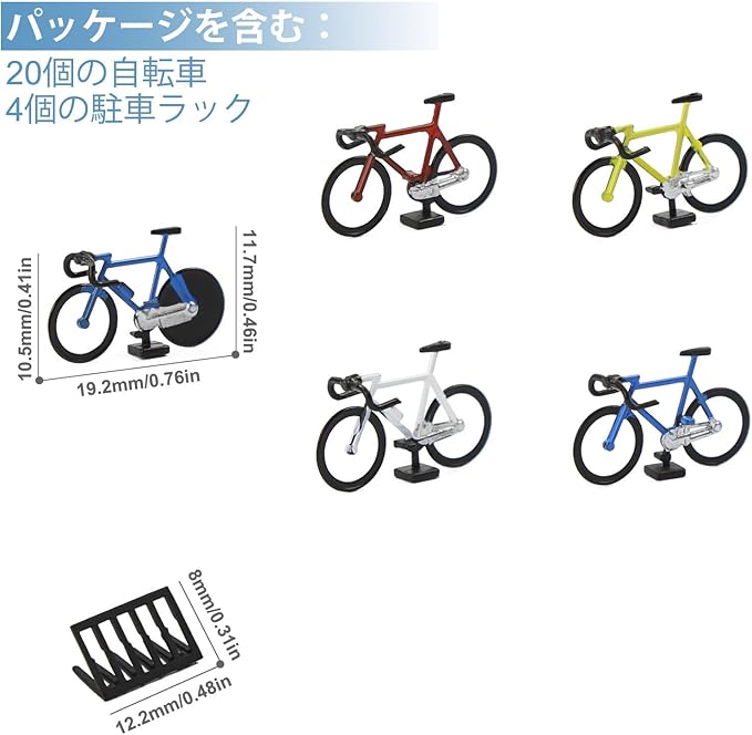 HOゲージ20台自転車模型と4台駐車ラック1/87自転車鉄道模型レイアウト ジオラマ用品C8702