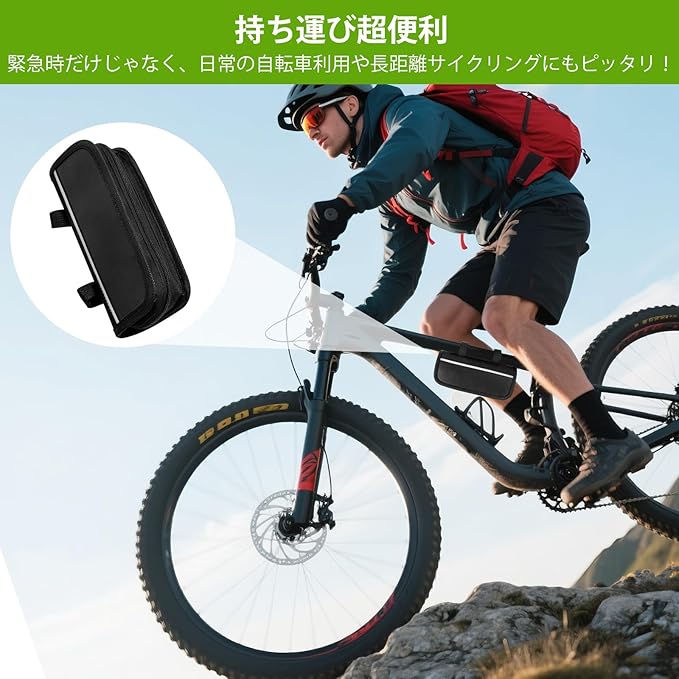 【持ち運び超便利】専用の収納バッグは、マジックテープで自転車に簡単装着可能!この修理工具セットは軽くて小さいので、ツーリングや通勤に持ち歩きやすい。緊急時に使うモノだから、常に持ち運ぶ必要はあるけど… コンパクトなので負担にならないですよ。(※注意:英式バルブには対応しておりません)