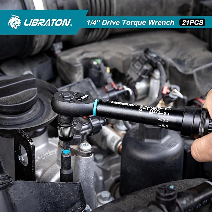 LIBRATON 自転車用 トルクレンチセット プレセット型 2-14N.m 差込角1/4インチ(6.35mm) ヘックスビット トルクスビット ビットホルダー 六角軸ソケット 自転車整備 21点セット