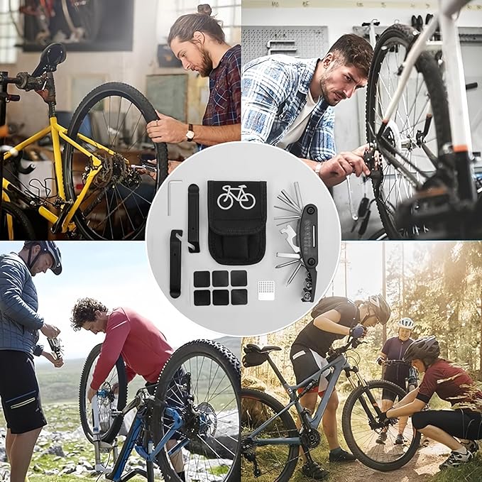 ♂️【16-in-1多機能修理ツール】六角レンチ(2mm/2.5mm/3mm/4mm/5mm/6mm)、ソケットレンチ(8mm/9mm/10mm)、プラスドライバー、マイナスドライバー、ソケット延長棒、フラットレンチ(8mm/10mm/15mm/14GE)など、日常の調整や緊急トラブルに幅広く対応。あらゆるライドを安心・安全にサポートします。