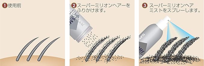 増毛パウダー(植物系抗菌繊維)が静電気で付着して髪を太く見せることにより、自然にボリュームアップしたように見せる商品です。