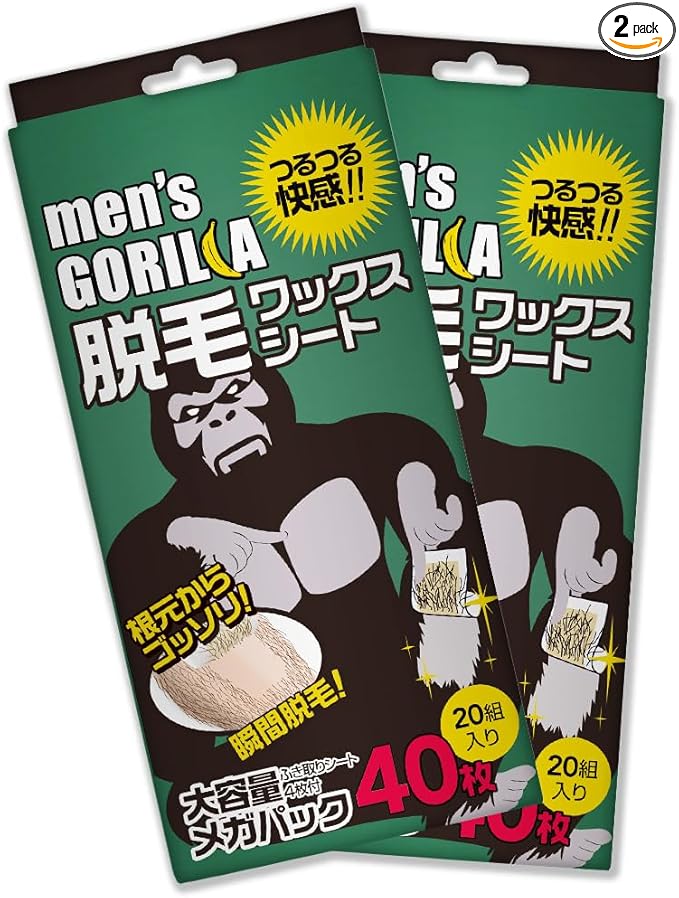 メンズゴリラ ワックス脱毛シート 80枚セット(40枚 2個) 男女兼用 ブラジリアンワックス 顔 脱毛テープ 眉毛ワックス 眉毛脱毛 だつもう メンズ レディース 眉毛