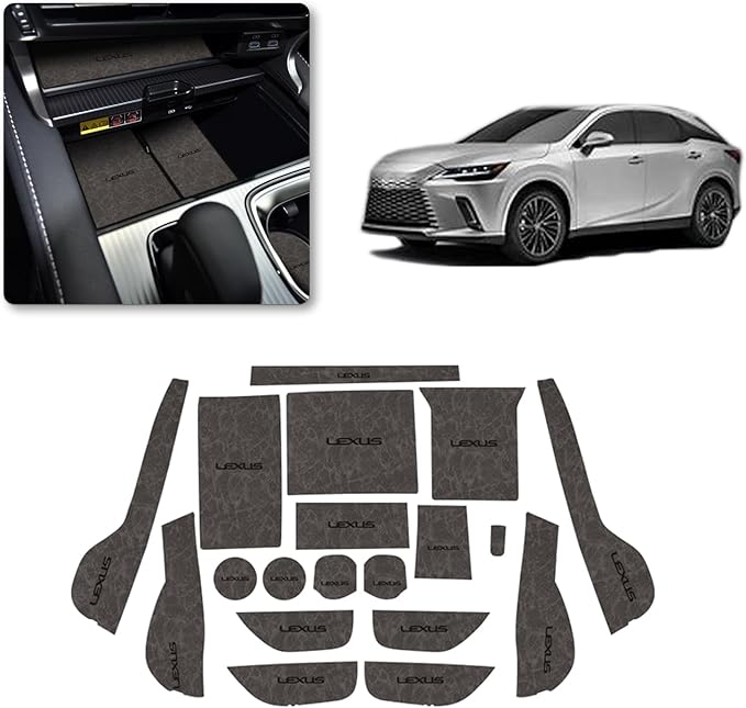 レクサス RX 5代目 2022年11月-現行 ワイヤレス充電なしに対応 ドアポケットマット インテリアラバー ノンスリップ 引っ掻きキズ防止 滑り止め 汚れ防止 防水 防塵 19枚 右舵運転, Logo