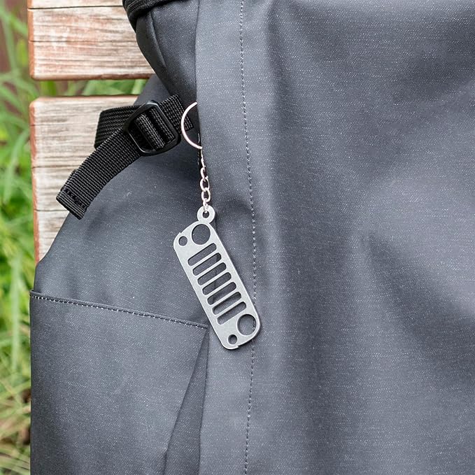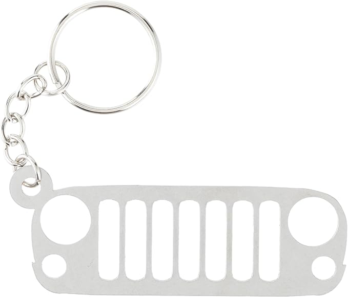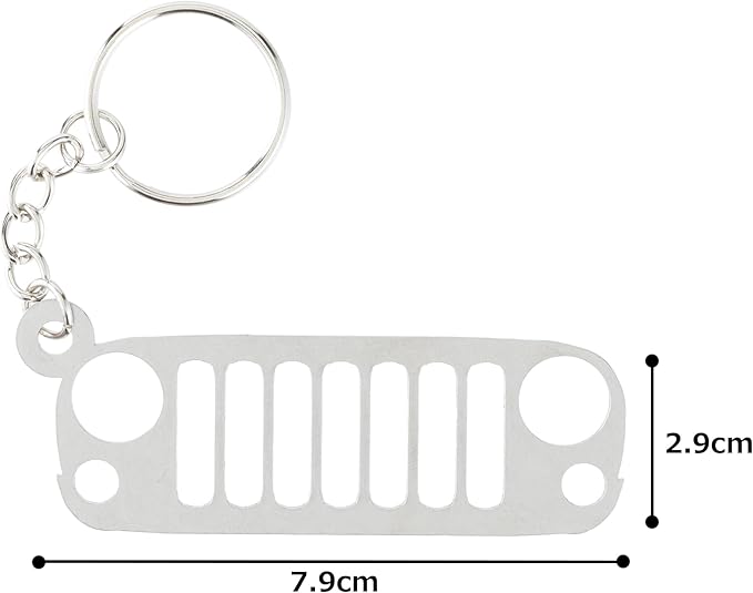 名車:ジープラングラーJKのヘッドライトとフロントグリルとを合わせて車の顔とした、とてもクールなキーホルダーです。愛車と合わせてみてはいかがでしょうか。