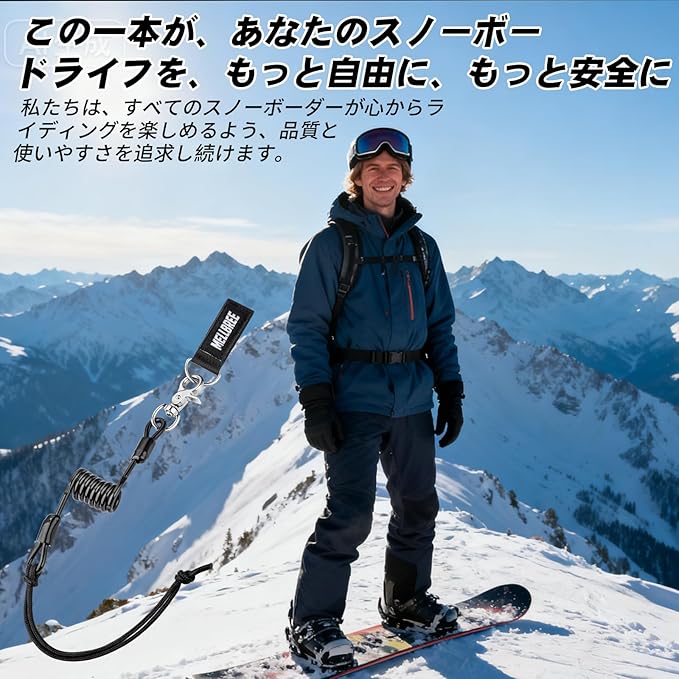 スノーボード リーシュコード スノボ 流れ止め 動きやすい 伸縮コイル ブーツを傷めない 幅広設計 高耐久 耐寒 流れ止め 安全対策 BOA対応