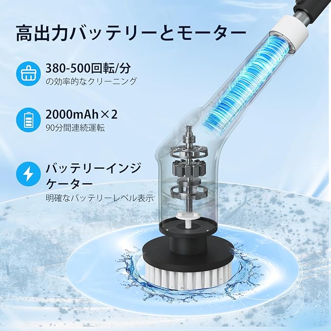電動お掃除ブラシ バスポリッシャー お風呂掃除 ブラシ 長さ伸縮可能 手持ち式 IPX7防水 8種類の多機能ブラシ付 大容量4000mAhバッテリー 残量表示機能付き 軽量 コードレス 浴槽磨き 車掃除 トイレ掃除 床 窓 壁 玄関掃除 年末大掃除