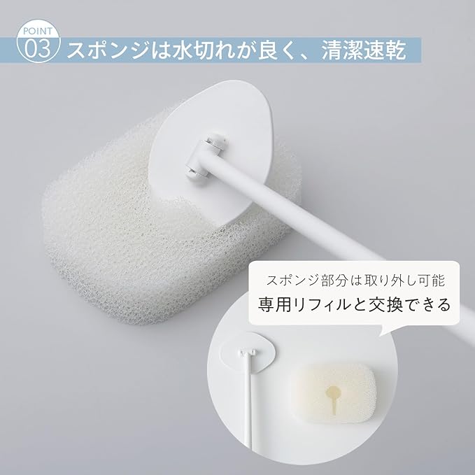 【柄付きでラクラクお風呂掃除】GOOD DESIGN賞受賞(※)。スポンジは水切れよく、清潔速乾。手あたりの良い長めの柄付きで、ラクな姿勢でバスタブが洗えます。※2018年受賞