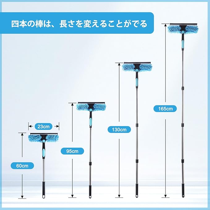 【サイズ】:横幅:約23cm;長さ:約60-165cm。 【カラー】:ブルー。 【セット詳細】:シェニールパッド1枚、マイクロファイバー パッド1枚、ハンドル四本、ヘッド1個。