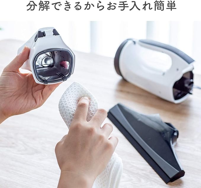 重量800gなので片手でも使えます。水がたまるタンクは取り外せるので、水捨ても手を汚さずできます。