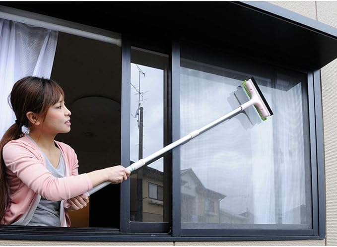 アズマ工業 TK伸縮自在 ガラス網戸ワイパー ピンク 窓ガラスと網戸のお掃除はこれ1本 ガラスワイパー 網戸ブラシ 拭き幅約25cm 全長63~120cm
