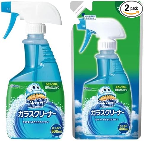 スクラビングバブル ガラス用洗剤 ガラスクリーナー 液体タイプ 本体 500ml + 詰め替え用 400ml 鏡 窓ガラス用 掃除グッズ 汚れ落とし まとめ買い