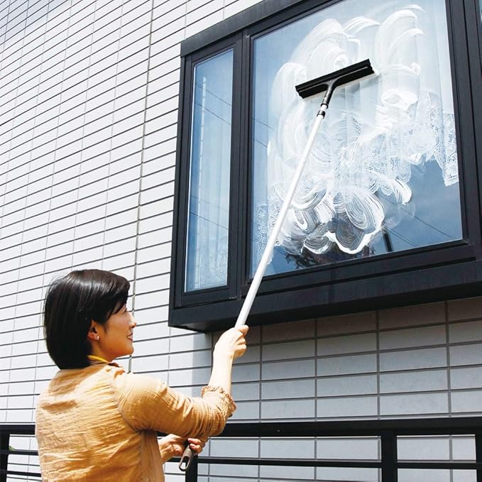 ロングタイプで高い窓にも届く。窓ガラスの水洗いから水切りまで。