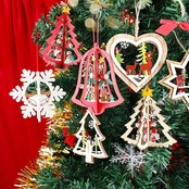 14個セット クリスマスツリー オーナメント 木製 クリスマスツリー 飾り 北欧 デコレーション 立体 透かし彫り 星 雪 サンタ 雪だるま ハート ベル