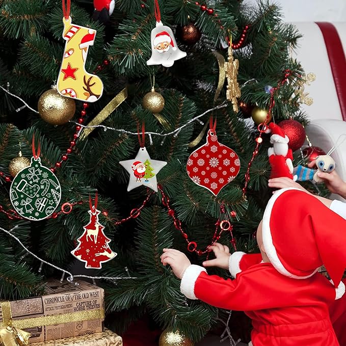 【DIYクリスマスオーナメント】 このDIYアクリルオーナメントは空白で透明なスタイルでデザインされています。想像力を最大限に活用して表面をDIYし、装飾として吊るし、フェスティバルの雰囲気を作り出します。