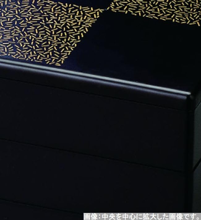 J-kitchens 重箱 3段 7.0寸 彩 お重箱 艶消黒 地紋金市松 21.0cm x 21.0cm x 16.5cm 日本製