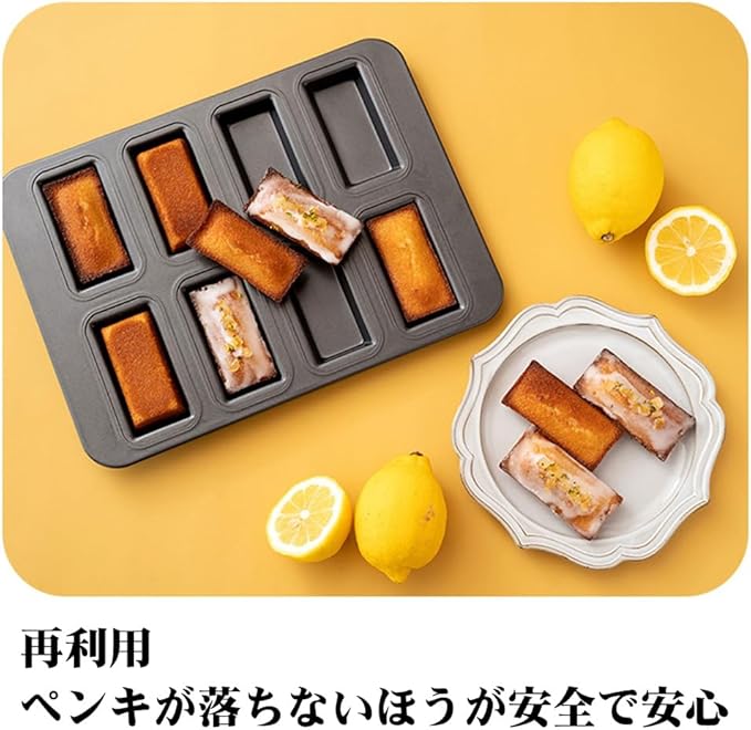 特殊処理工程:フィナンシェ 型の表面は独特の処理工程を採用しており、焼成完了後、フィナンシェの形状がくっつかずに型から簡単に外せます。
