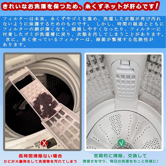 ◇洗濯物への糸屑の付着を防ぐ、ゴミ取りネットです。◇お使いの洗濯機に適合する、糸くずフィルターをお選びください。