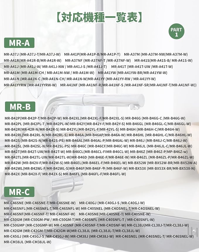 【対応機種】MR-JX52W MR-JX53Z MR-JX61Y MR-JX60W MR-MB45E MR-WX47C MR-WX71Z MR-B46D MR-RX47T MR-RX52T MR-WX60A MR-MX50F MR-MX57D MR-B46A MR-R47W MR-WX47D M20CM5526 MR-A37JT MR-A37M MR-A37NF MR-A41J MR-A41JS MR-A41M MR-A41N MR-A41NF MR-A41NFS MR-A41R MR-A41SB MR-A41T MR-A41YW MR-A41YY MR-B42T MR-B42W MR-B42X MR-B42Y MR-B42YL などに対応できる三菱冷蔵庫 製氷機フィルターです。(ほとんどの三菱冷蔵庫製氷機に対応できすが、具体的な機種は写真と商品の説明を参考至てください。)