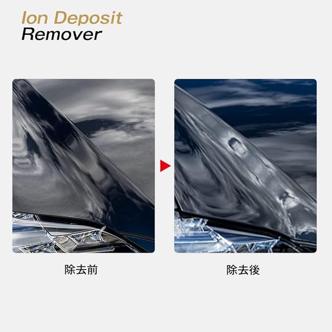 濃色車に発生しやすいイオンデポジットは長期間放置するとボディ塗装を侵食します。雨ジミの早期除去でボディ塗装を維持できます。