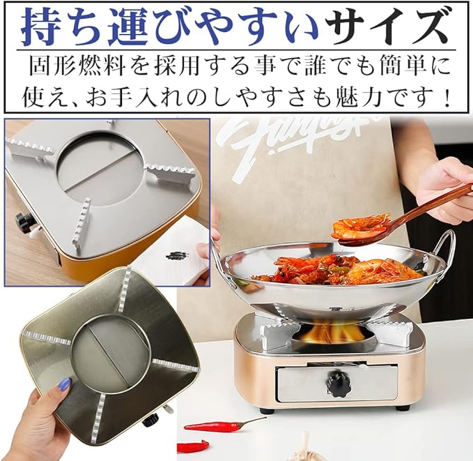 小型コンロ 固形燃料使用 火力調整可能 料理 アウトドア キャンプ 災害 停電 車中泊 コンパクト 一人鍋