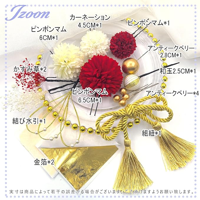 【選び抜かれた素材】高品質のダミーフラワーと結び水引、和玉とアンティークベリーを装飾に使用しています。流蘇は動きを増し、丁寧な手作業も示しています。耐久性が高く、金箔の光沢度があります。その美しさを長時間存在することができます。