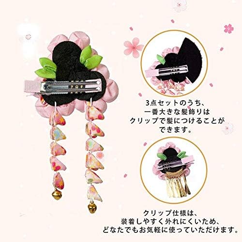 [JZOON] 髪飾り3点セット 成人式 七五三 浴衣 袴 着物 振袖 和装 つまみ細工 花 卒業式 結婚式 鈴付き 手作り 赤 青 紫 ピンク 白 5色全15選