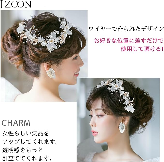 【ハンドメイド】職人が一点一点丁寧な手作業で仕上げたハンドメイドアイテム。留め具はUピン仕様ですので、留め具はUピン仕様ですので、ヘアスタイルにあわせて簡単に取り付け可能です。ワイヤーで角度等自由に曲げられるので、サイドにもバックにお付け頂いても映えます。