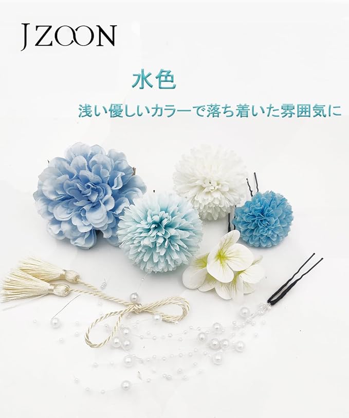 [JZOON] 髪飾り全九色 浴衣 着物 袴 振袖 和装 成人式 結婚式 卒業式 ヘッドドレス ウェディング ヘアアクせサリー 花クリップ レディース 七五三 7点セット