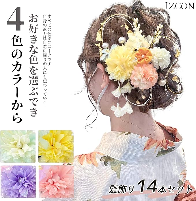 ❀JZOONデザイナーが設計したオリジナル髪飾りセット、成人式、振袖、卒業式、袴など和装小物を自由に組み合わせられる。