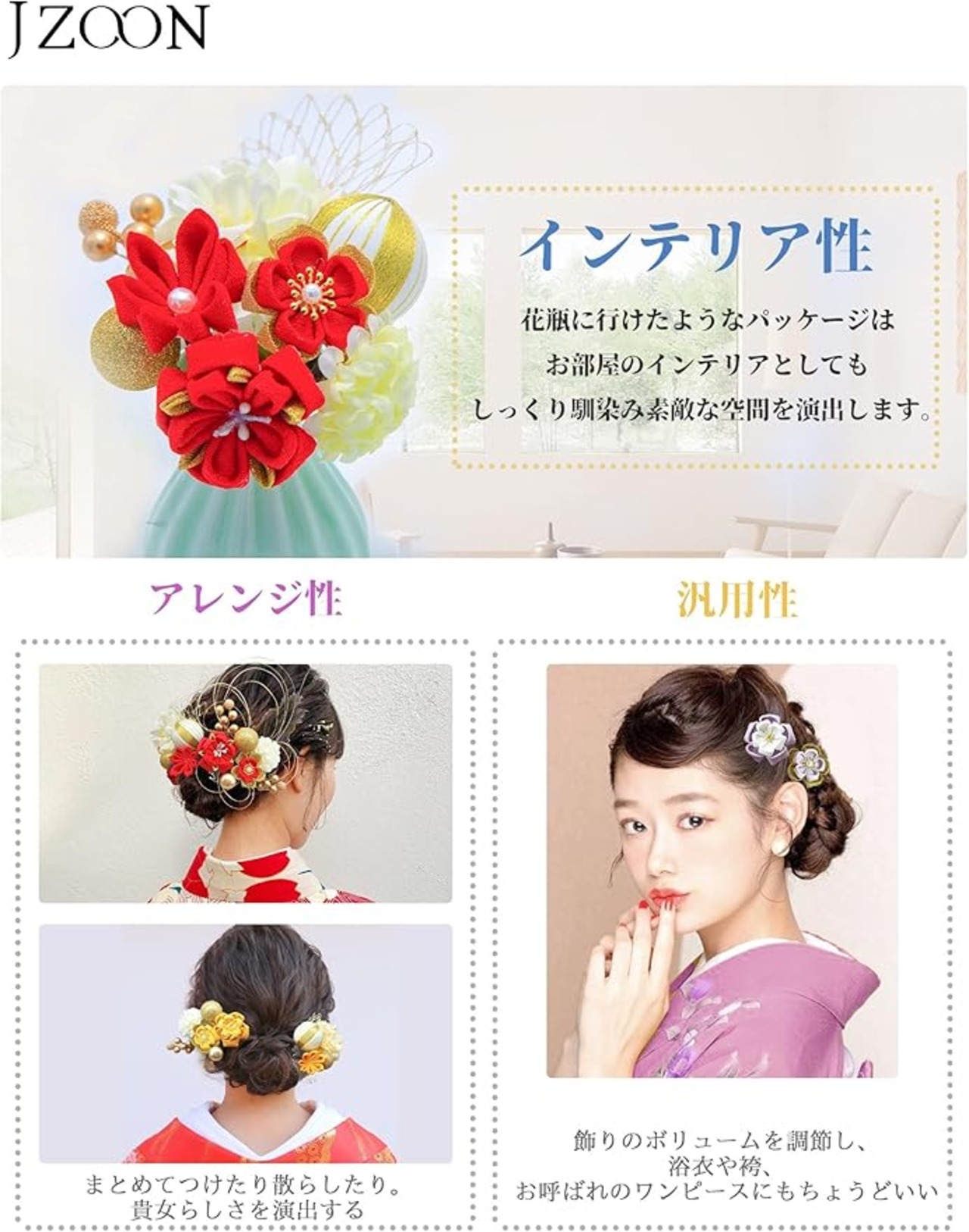 [JZOON] つまみ細工 成人式 七五三 浴衣 髪飾り 人気 和服 ヘアーアクセサリー かんざし 着物 振袖 袴 結納 卒業式 入学式 結婚式 発表会